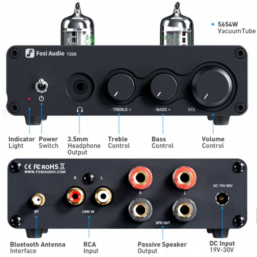Amplificator lampi stereo Fosi Audio T20X Bluetooth 5.0 + Preamp Casti