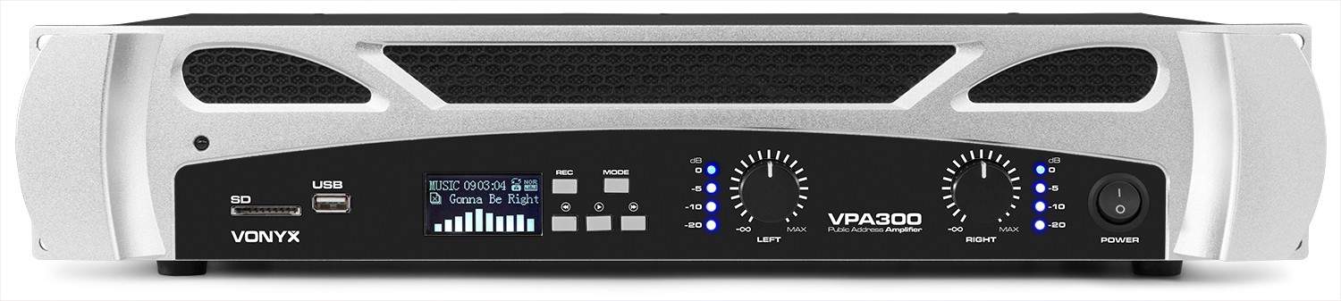 O serie de amplificatoare pentru utilizare semi-profesională. Tehnologia modernă asigură performanțe maxime pe termen lung, iar conectarea la și de la acest amplificator este o sarcină simplă! La fel ca toate amplificatoarele Vonyx, VPA300 este construit pentru a rezista sub presiune. Această unitate vă va oferi sunetul de care aveți nevoie într-un club aglomerat, o scenă sau în studioul dvs. Poate fi conectat cu ușurință la orice studio sau rack mobil standard! Potrivit pentru aplicații de 19 ″.