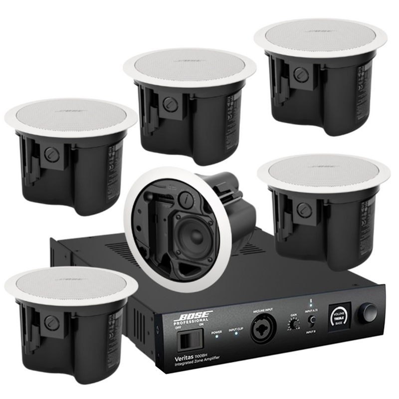 Sistem audio restaurant Bose Professional AudioPack Pro FS2C 6x Bundle cu 6 boxe incastrabile Freespace FS2C si amplificator Veritas 1100 cu putere de 100W si conectivitate Bluetooth.