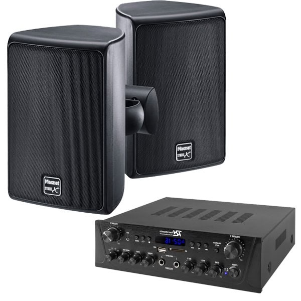 Sistem audio complet cu boxe de perete Magnat conceput pentru restaurante, cafenele si bar-uri cu dimensiuni mici (30-40mp). Boxele au sistem de aplicare pe perete si sunt izolate impotriva umiditatii.