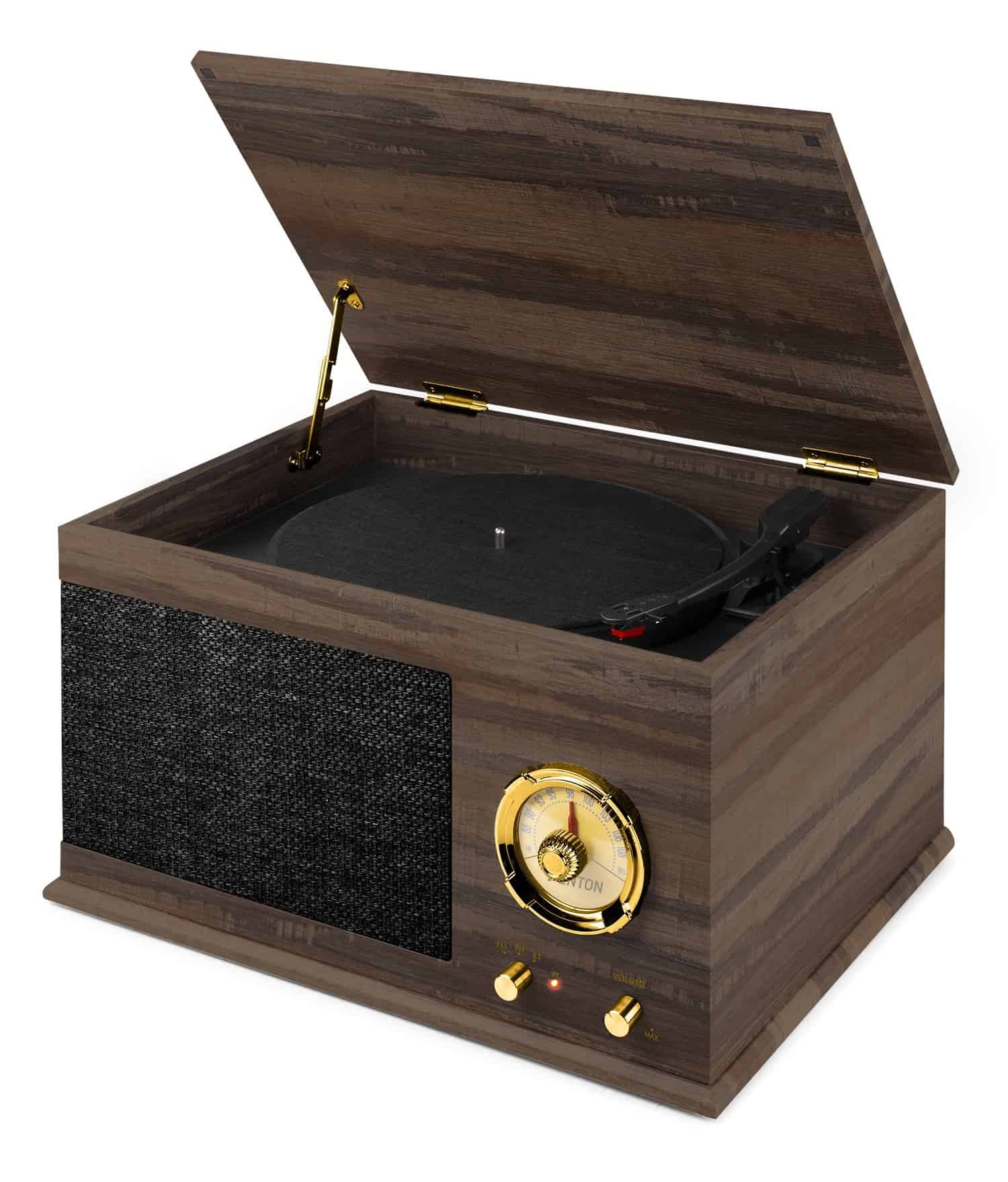 Ascultați vinilul dumneavoastră preferat cu aceasta combina audio player cu design vintage autentic completat cu un furnir din lemn de culoare închisă