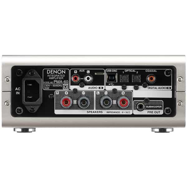 Denon PMA 60 este un amplificator complet digital, care oferă 50 W pe canal din amprenta sa compactă datorită tehnologiei DDFA de ultimă generație, oferă o eficiență mai mare și o distorsiune mai mică. Procesarea avansată AL32 proprietară Denon plus Master Clock Design asigură o gestionare precisă a semnalelor digitale până la rezoluții ultra-înalte – 384kHz/32bit și DSD256/11.2MHz, oferind o calitate a sunetului mult peste cea a CD-urilor.