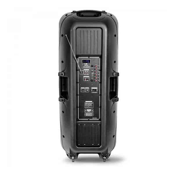 Acest sistem de sunet autonom cu baterii are conexiuni pentru a satisface orice cerinte, inclusiv USB, Bluetooth, cititor de carduri SD, intrare RCA aux si tuner FM. Sunt incluse, de asemenea, doua microfoane wireless UHF de mana ideale in situatii care necesita un sistem de sunet complet gata de utilizare (muzicieni pe drum, karaoke, baruri, cursuri de fitness, predare, vorbire, antrenori etc.).