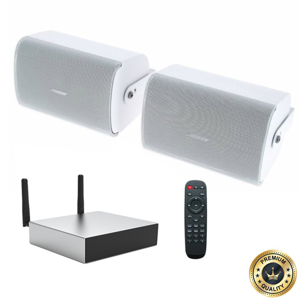 Sistem 2 boxe stereo albe aplicate Bose FS4SE cu amplificator Kruger&Matz A20, pentru un sunet superb si design inovativ – acum cu DSP Custom BOSE FS4 inclus, mai mult bass, mai multa claritate a sunetului