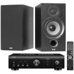 Sistem stereo hi-fi format din pereche boxe de raft Elac B6.2 si amplificator Denon PMA600NE.