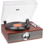 De la redarea discurilor clasice de vinil, până la conectarea la smartphone, Combina cu pick up RP180 face totul. Acest pick-up All-In-One cu stil nostalgic va reda toate discurile dumneavoastră pe uimitorul sistem de boxe încorporat. Acest player este echipat cu un CD player, un player media Bluetooth integrat pentru redarea muzicii fără fir și un receptor radio FM încorporat pentru acordarea postului de radio preferat. Cadranul iluminat galben, supradimensionat, adaugă aspectul vintage al plăcii rotative