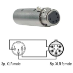 Adaptor cablu DMX DAP-Audio FLA30 – XLR 3 pini tata la XLR 5 pin mama, material metal.