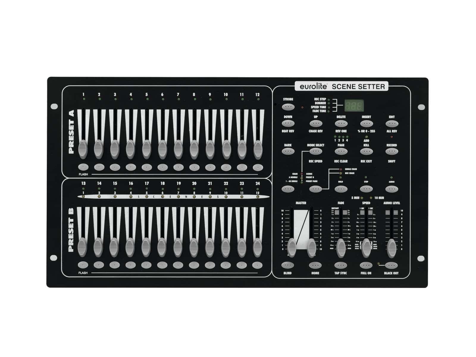 - Consolă de lumină pentru teatru pentru 24 de canale DMX, control al luminozității pentru fiecare scenă
