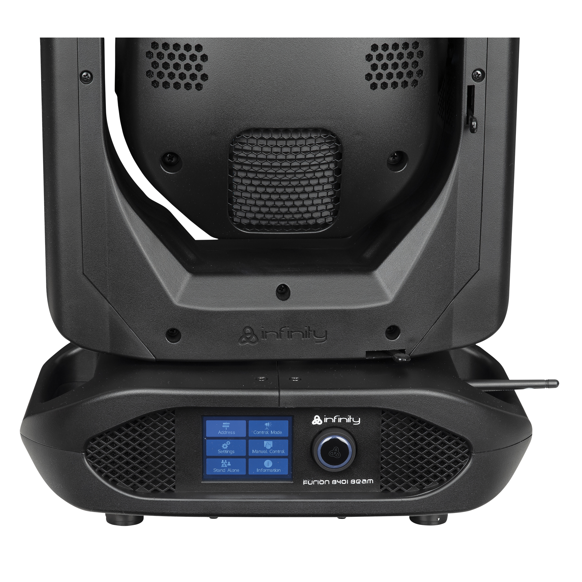 Moving head Infinity B401 Beam, puternic, cu Osram Sirius HRI 230 W 7R ca sursă de lumină. Ca și restul familiei, B401 a fost echipat cu motoare extrem de precise și rapide, care emit fascicul de 4° de fiecare dată. Furion B401 este echipat cu 17 gobo-uri metalice care creează efecte extraordinare prin utilizarea celor 2 prisme. Cea mai interesantă caracteristică care definește cu adevărat Furion B401 este roata de culoare.