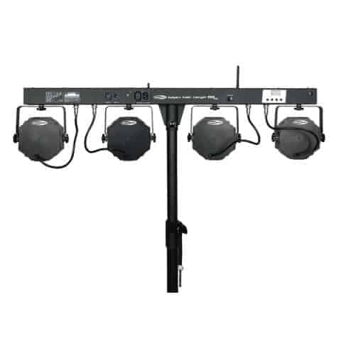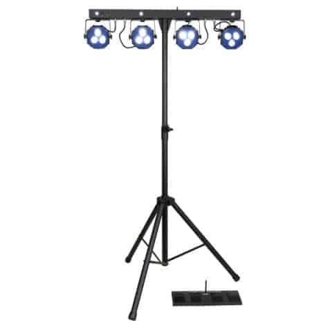 Acest set de lumini contine 4 proiectoare LED PAR RGBW care ofera o mare varietate de efecte. Iar ac element special, acesti PARi sunt echipati si cu leduri UV pentru a crea un efect Blacklight.