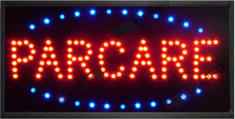 Reclama luminoasa cu textul PARCARE – panou publicitar static echipat cu led