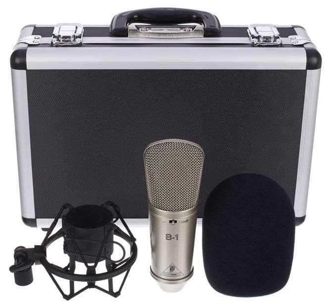 BEHRINGER B1 microfon de studio condensator cardioid. Banda de frecvente: 20 Hz – 20 kHz. Impedanta: 50 Ohmi. Sensibilitate: 20 mV/Pa. SPL maxim: 138 dB. Raport semnal/zgomot: 81 dB. Sursa de alimentare: +48 V. Dimensiuni (lungime x diametru): 174 x 58 mm. Greutate: 0.461 kg.