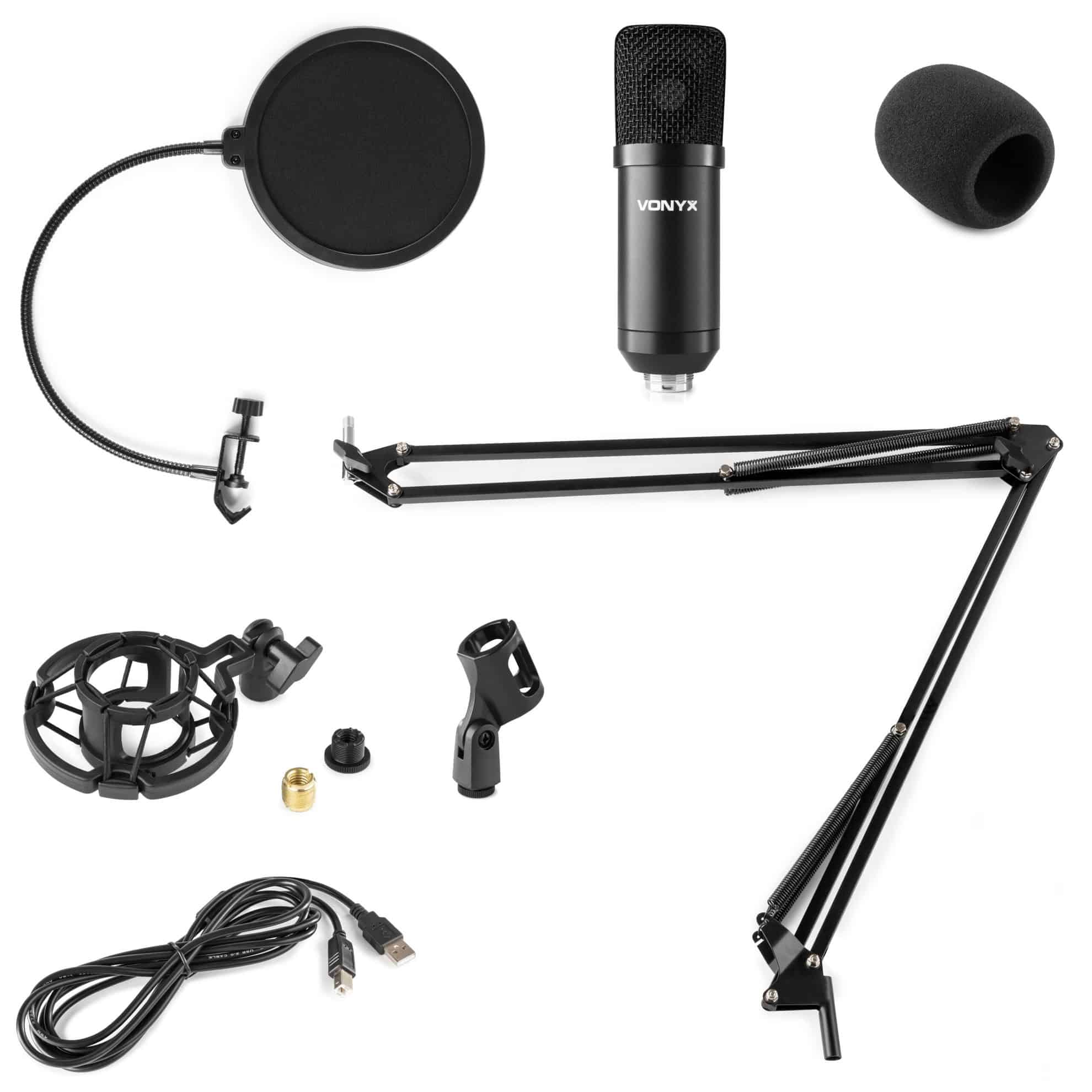 Set home studio microfon cu suport de masa, cu pop-filtru, USB, Vonyx CMS300B