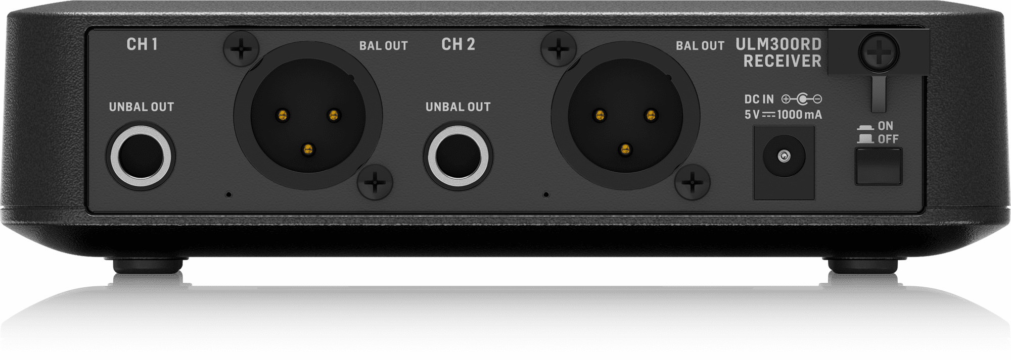 - Ieșiri receptor: XLR balansat și jack de 6,3 mm nebalansat pe canal