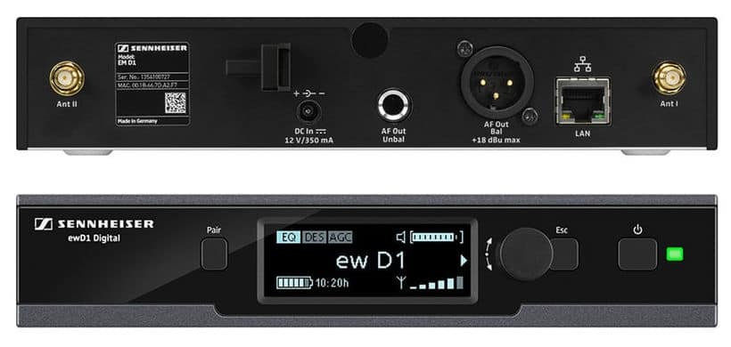 - Incl. clemă de microfon MZQ 1, 2x antene, sursă de alimentare cu adaptor de țară, set de montare în rack, baterii AA