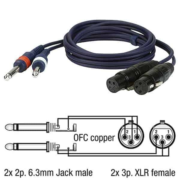 Cablu audio linie profesional, 2 x XLR mama la 2 x Jack 6,3mm tata, lungime 1,5m.