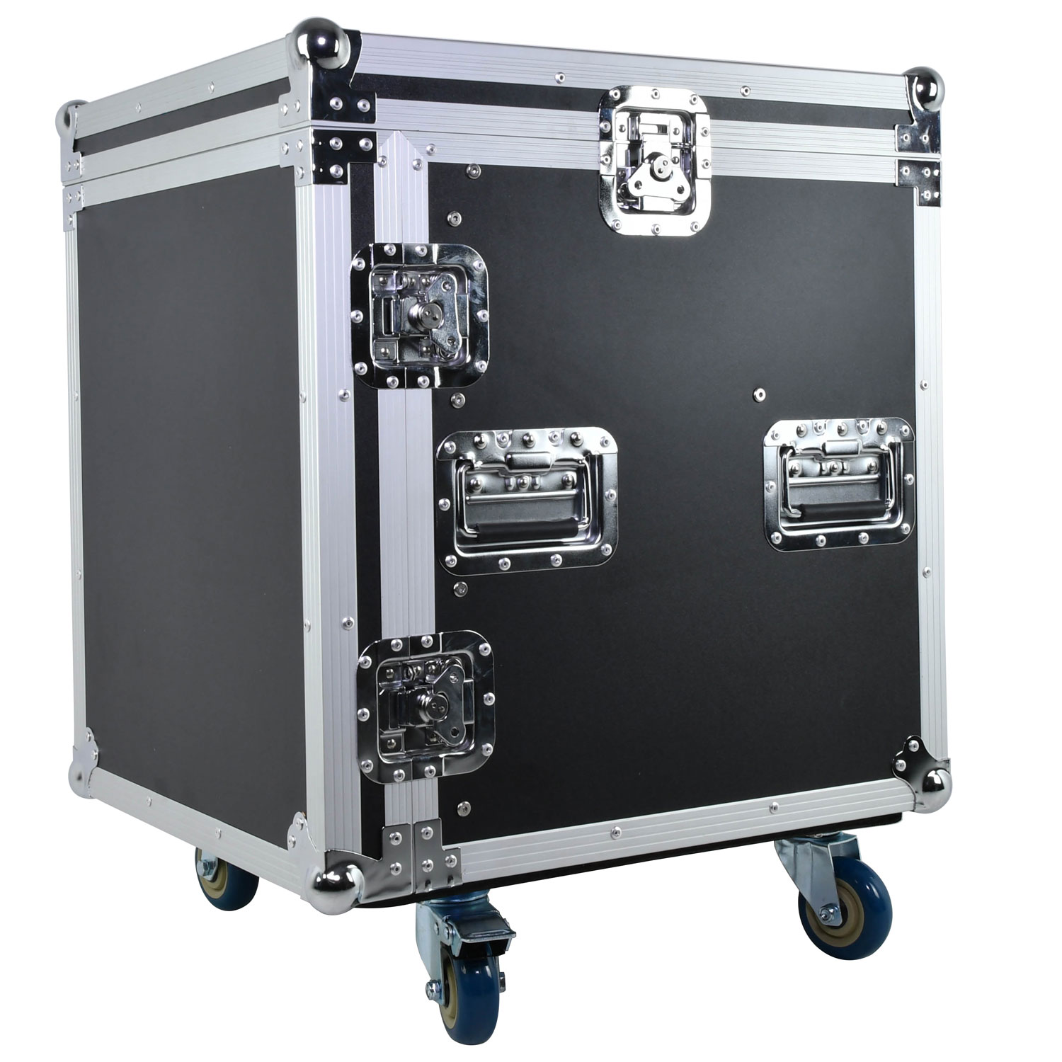 Rack mobil pentru echipamente cu posibilitatea de a monta un mixer de 19″ (10U) deasupra unității. Capacul frontal și superior complet detașabile. Roți incluse, pot fi montate pentru transport ușor