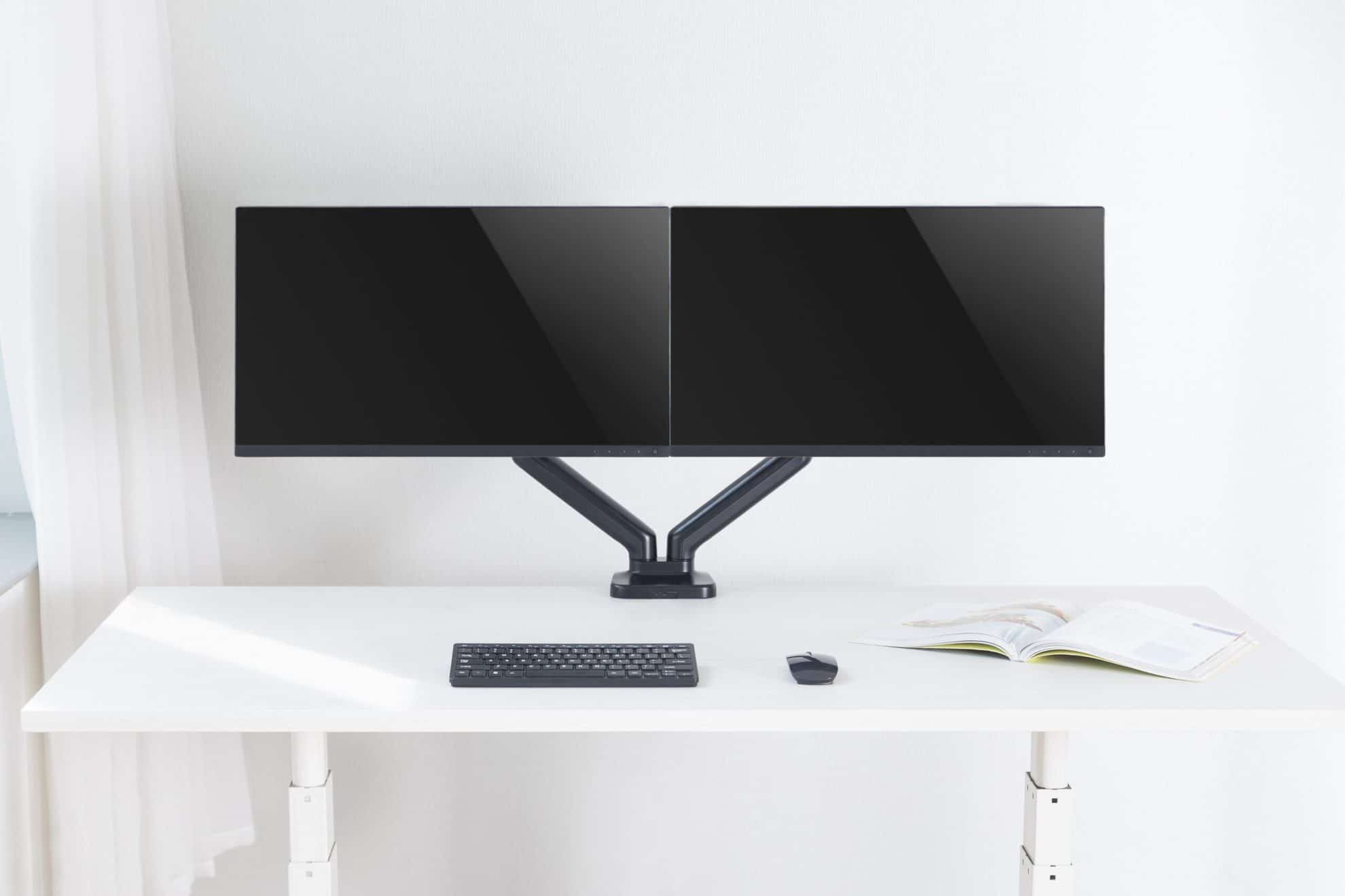 Suport monitor laptop dublu pentru birou MAD20G , 17”- 32”, 18kg, Audizio