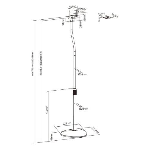Stativ boxe satelit HTS12 Set de 2, 775-1048 mm, Audizio