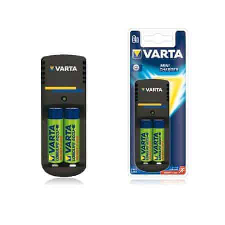 - Set incarcator miniatura cu 2 acumulatori AA, marca VARTA
