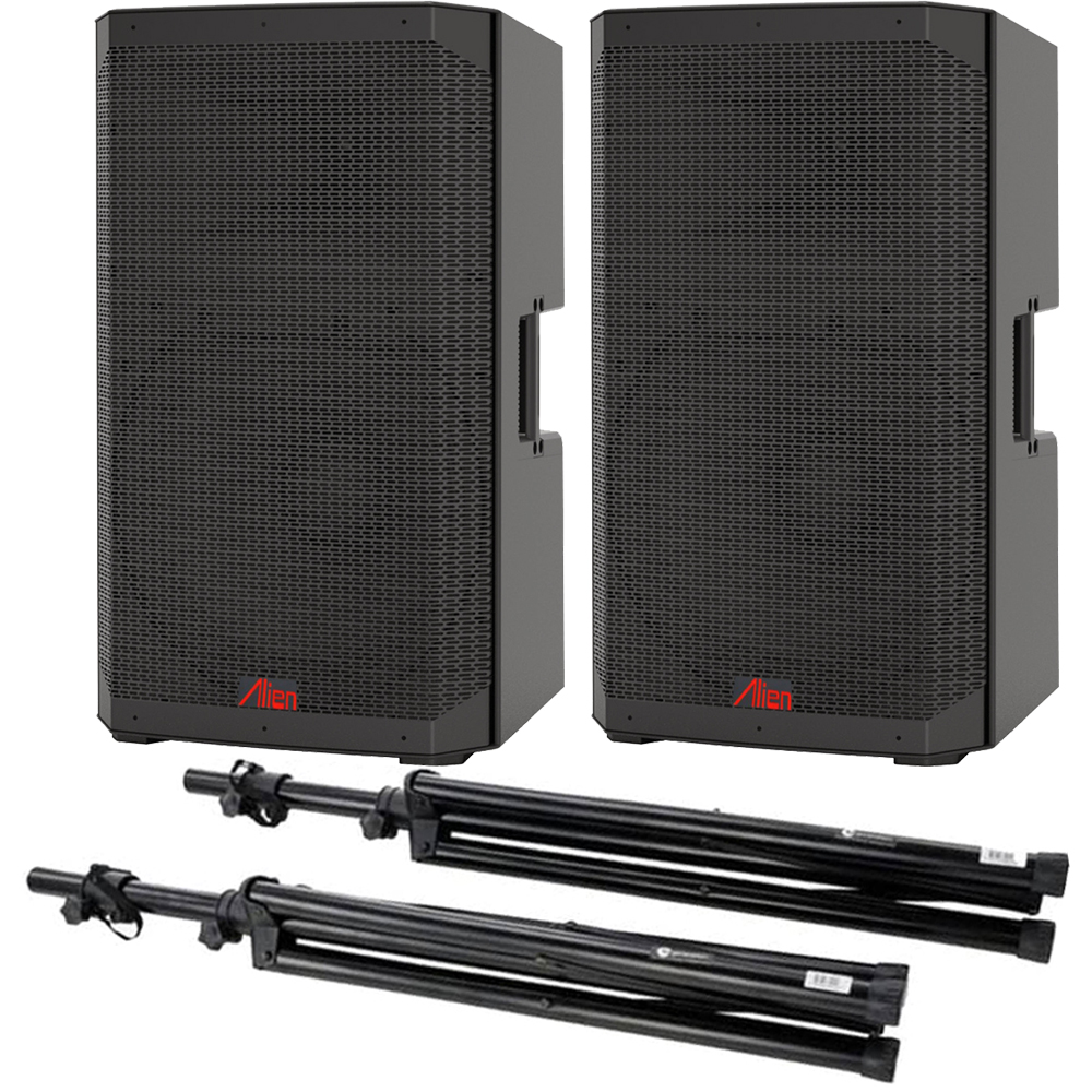 Set boxe active profesionale 500W Alien 4515, cu difuzoare woofer 15 inch cu Bluetooth, 2x 560W, DSP, cu Stative trepied solide