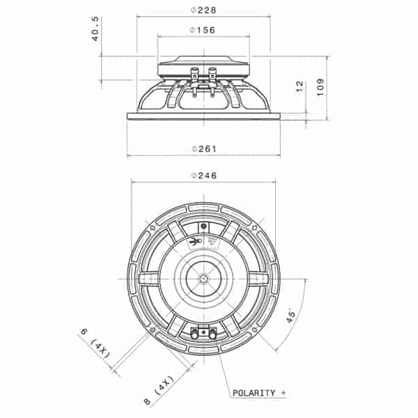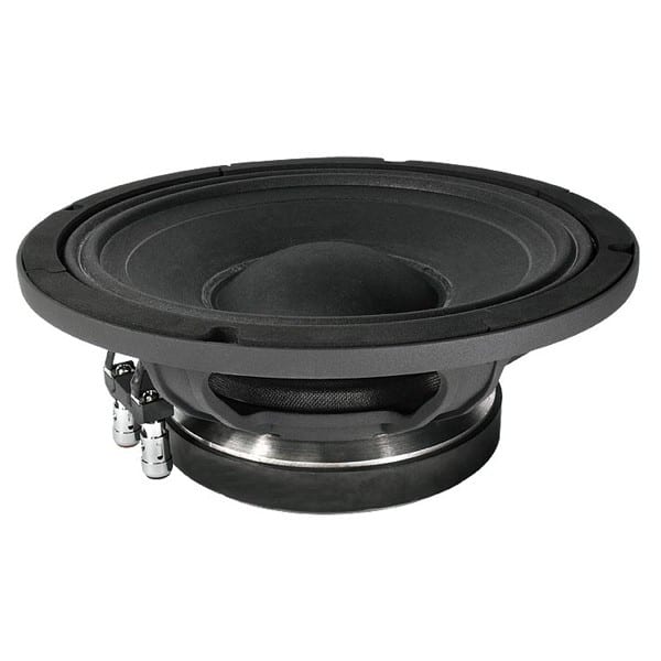 Difuzor subwoofer profesional 10 inch – 261 mm., putere 300w/RMS, impedanta 8 Ohm, sensibilitate 98 dB, raspuns in freventa 60-4.000 Hz, diametru bobina 2.5 inch- 65mm, greutate difuzor 4.1 Kg, magnet Neodymium Slug, diametrul 228 mm, greutate 4.7 kg