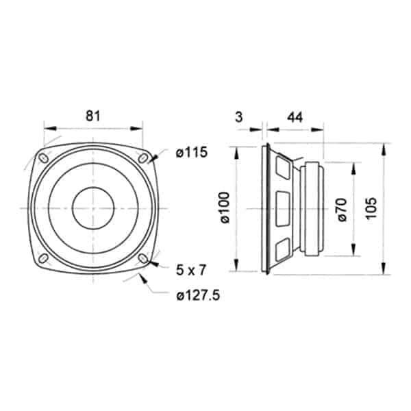 Difuzor-gama completa cu un con de hartie si surround de cauciuc elastic. conceput pentru boxe coloane, difuzoare montate pe tavan, boxe hi-f, instrumente muzicale electronice