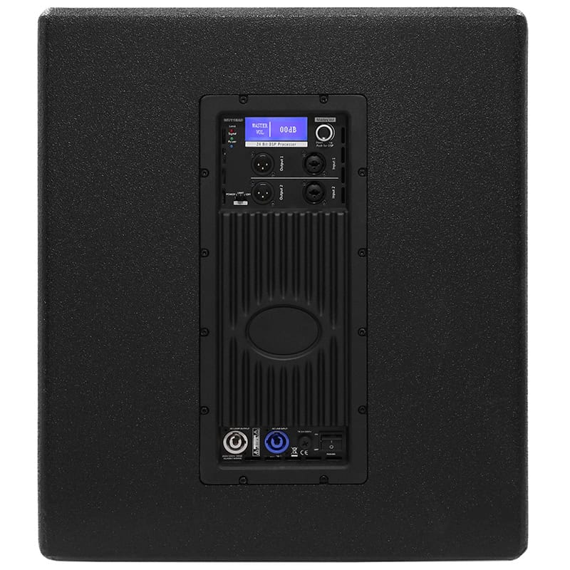 Subwoofer amplificat 15 inch cu putere de 800W RMS. Este echipat cu un procesor DSP cu o rată de eșantionare de 48 kHz / 24 biți și cu un amplificator de clasă D.