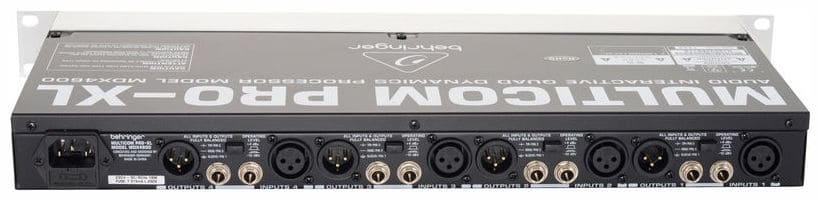 BEHRINGER MDX4600 MULTICOM PRO-XL. Expander/gate/compressor/limitor peak de referinta cu 4 canale, enhanced dinamic si filtru low-cut, intrari si iesiri balansate cu conectori XLR si jack. Dimensiuni: 1 unitate rack, 19 inch. Greutate: 2.2 kg