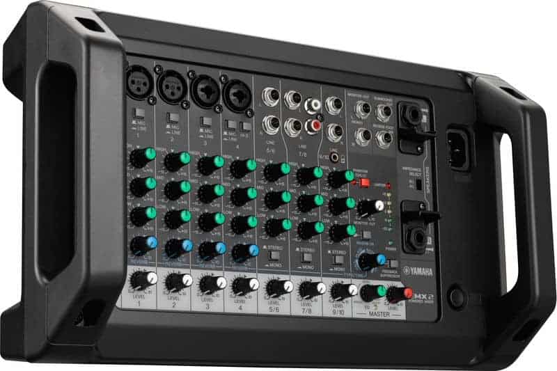 - Patru intrari de microfon cu phantom power de +30 V, doua intrari pentru instrumente muzicale, trei canale stereo, iesire dedicata pentru subwoofer