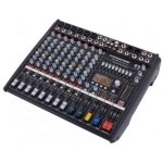 - fiecare canal este dotat cu un EQ pe 3 benzi si 3 send-uri (FX post fader, AUX pre-post fader, Monitor pre-fader), balance, pan, mute, PFL