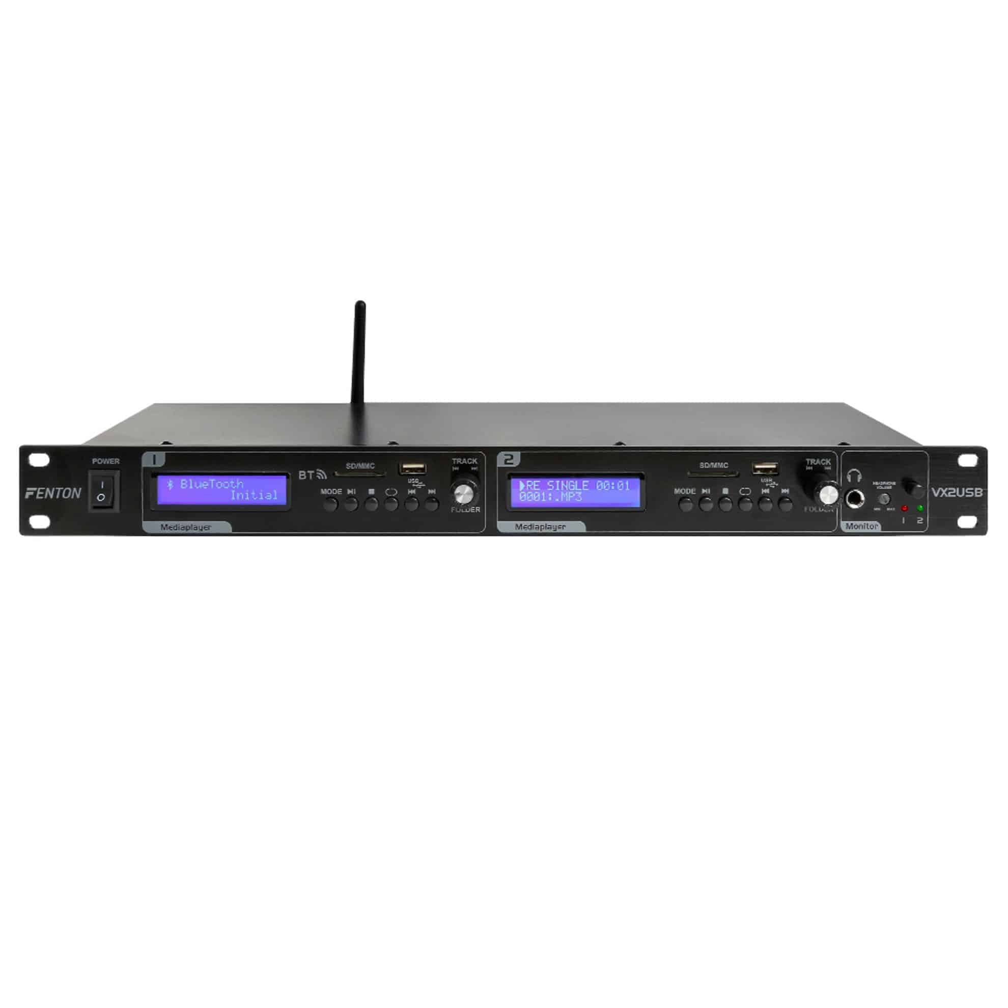 VX2USB este un Player audio bluetooth USB-SD -BT dublu intr-o carcasa compacta de 1U, cu posibilitatea de a inregistra iesirea mixta pe fiecare player. Playerul din stanga este potrivit si pentru transmiterea muzicii de pe telefon sau de pe alt dispozitiv mobil. Pe partea din fata a playerului exista o intrare pentru casti pentru monitorizarea selectabila a fiecarui canal.