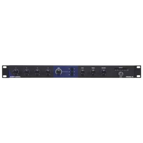 Amplificator cu Mixer 100V Proel AMP160XL – Proiectarea amplificatorului AMP160XL cu dimensiunile si greutatea incluse in doar o unitate rack, a fost posibila datorita folosirii unei tehnologii care permite schimbarea sursei de alimentare prin SMPS (switch mode power supply) si datorita tensiunii de iesire constante la 70/100V, obtinuta electronic, fara transformatori.