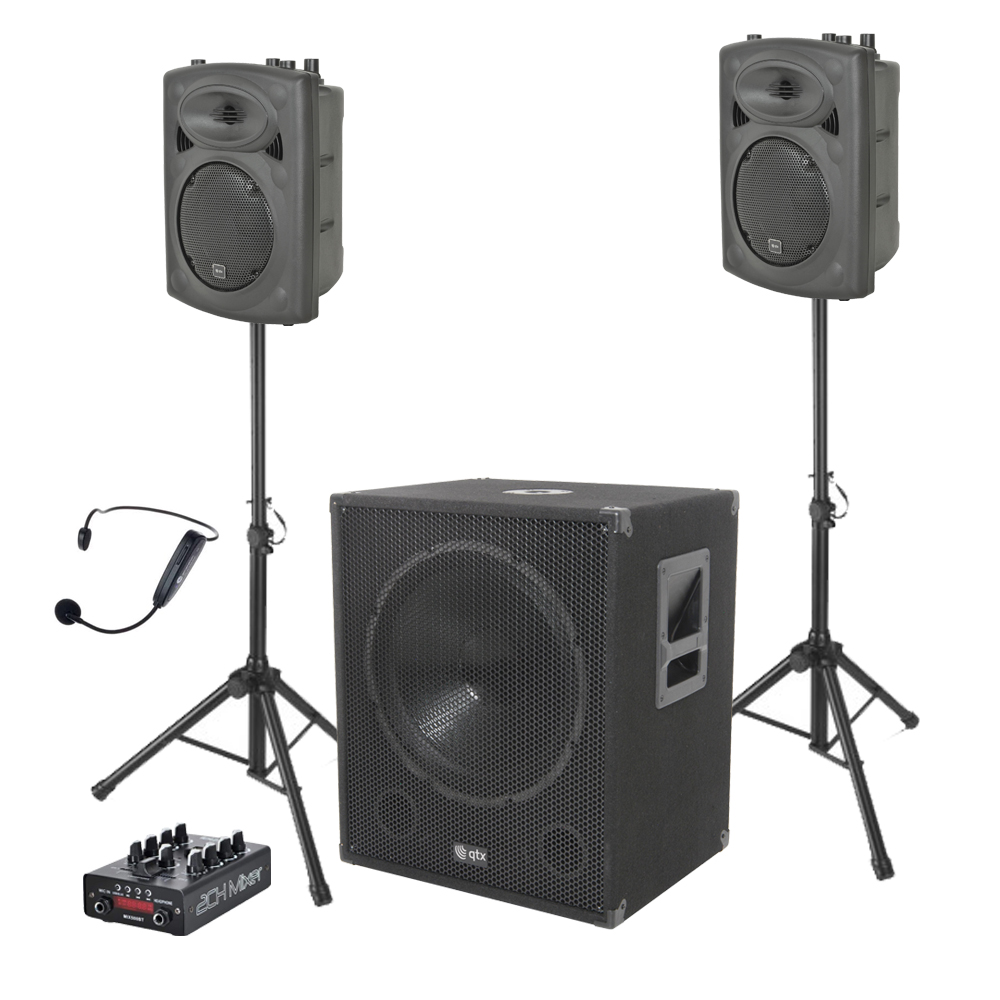 Boxe active cu stative si Subwoofer QTX Basis Bundle
