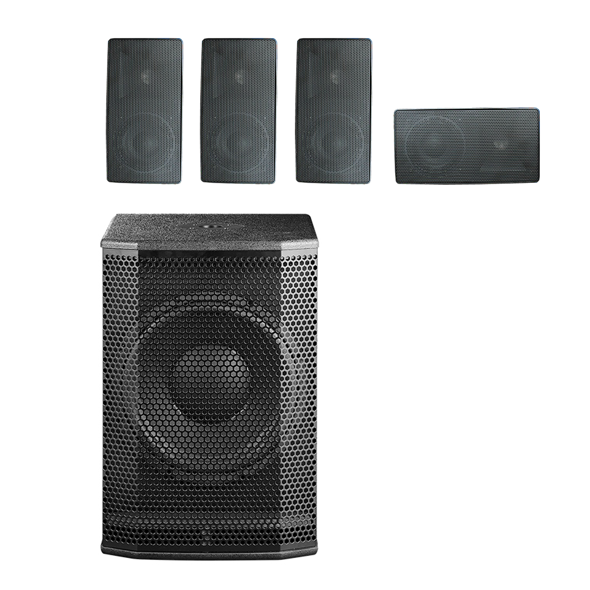 Sistem audio activ 4.1 format din subwoofer si 4 boxe satelit, pentru dj, muzica live sau ambientala, recomandat pentru auditii da mare calitate in localuri cu suprafete de pana la 80 mp.