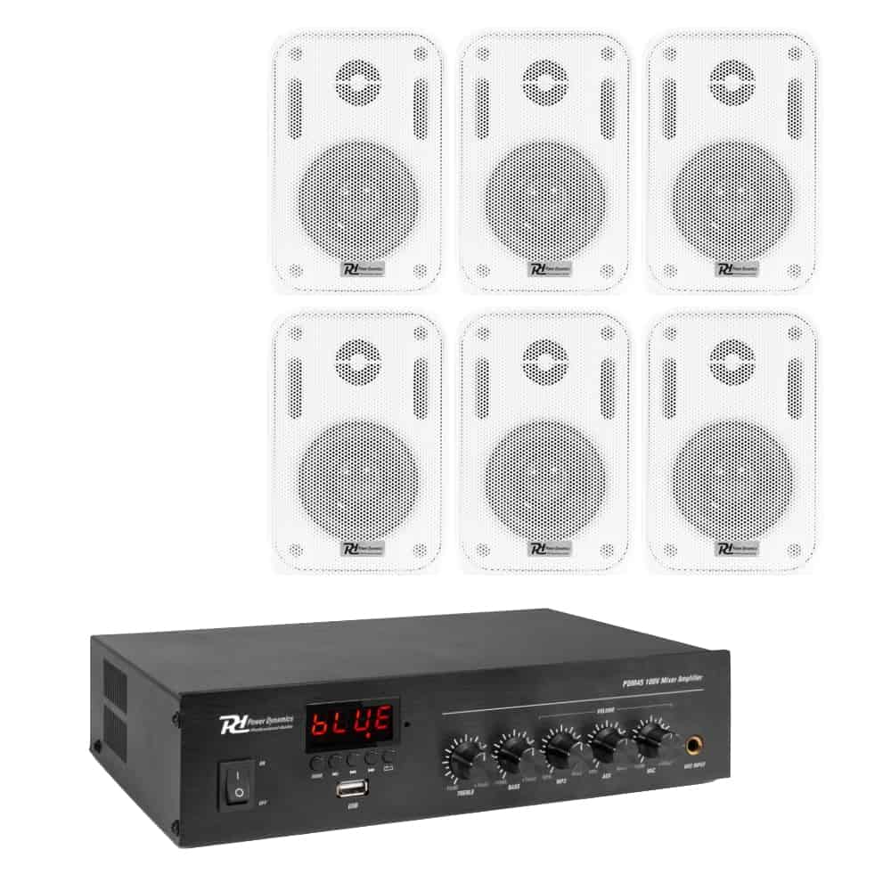 Sistem sonorizare horeca Basic 4 Wal-4 pentru muzica ambientala in cafenele sau restaurante, cu 6 boxe raft / perete si amplificator