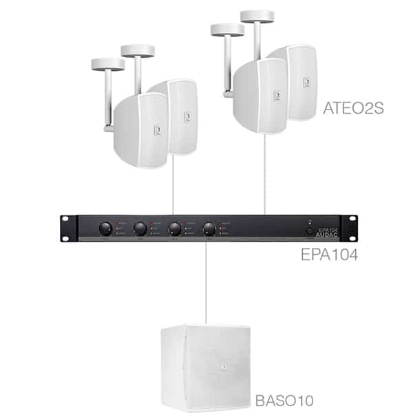 - Audac Subli2.5EC W este un sistem audio profesional extrem de compact ce contine 4 boxe ATEO2S, subwoofer BASO10 si amplificator EPA104