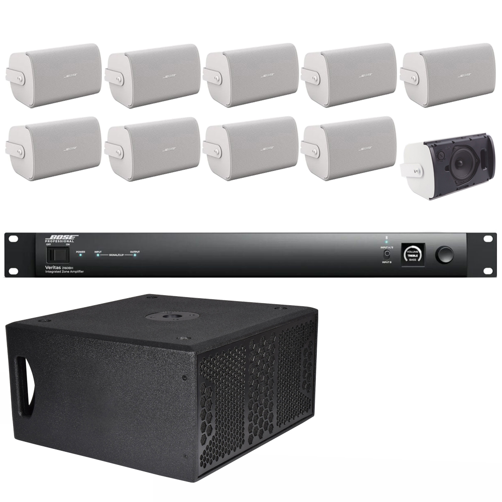Sistem sonorizare sala de fitness Bose FS4SE cu 10 boxe albe (sau negre) de perete, Subwoofer, 2 zone si putere de 720W RMS – un set complet cu sunet preemium pentru sali de sport.