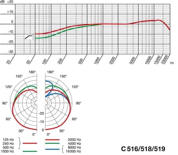 AKG C 519 M – microfon cardioid profesional mini cu condensator pentru trompeta, saxofon, trombon, tuba sau orice alt instrument de suflat. Model cardioid polar C 519 face un instrument ideal pentru utilizarea sa in apropiere, iar raspunsul sau de frecventa plat ofera un sunet natural, puternic si clar. Banda de frecvente: 60 Hz – 20 kHz. Sensibilitate: -46 dB. SPL maxim: 130 dB. Raport semnal/zgomot: 63 dB. Impedanta: 200 Ohmi. Conector: mini XLR. Culoare: negru mat. Cablu 3m XLR normal – XLR mini, husa si cap de burete.