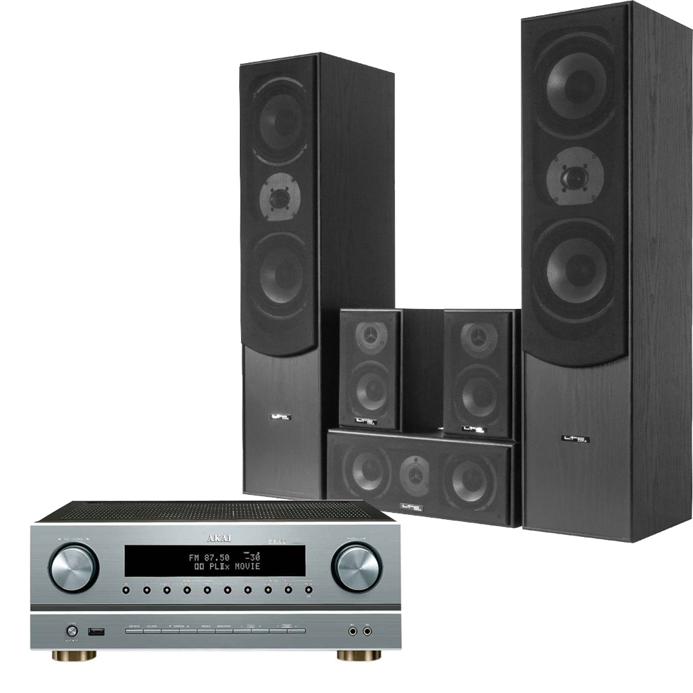 Pachet hi-fi 5.0 format din receiver Akai si sistem boxe 5.0 LTC