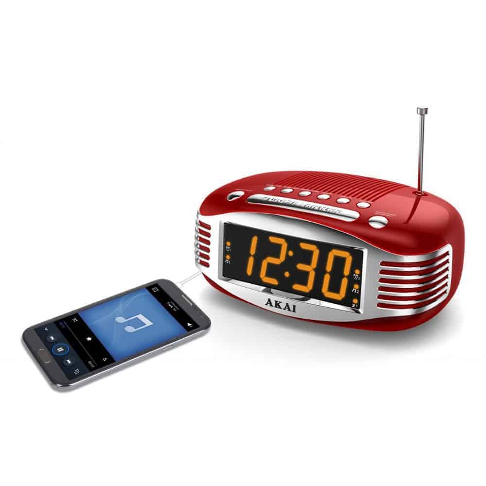 Radio vintage FM / AM Akai CE-1500, cu ceas, alimentare retea, Aux in, functie alarma cu radio sau buzzer, functie Snooze, antena telescopica, rosu