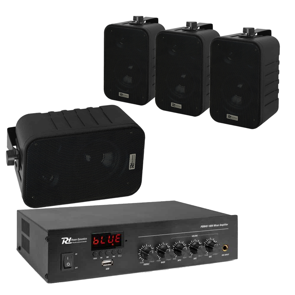 Set 4 boxe cu amplificator Ambient 5, Negru, cu aspect elegant si sunet excelent, pentru cafenele si restaurante