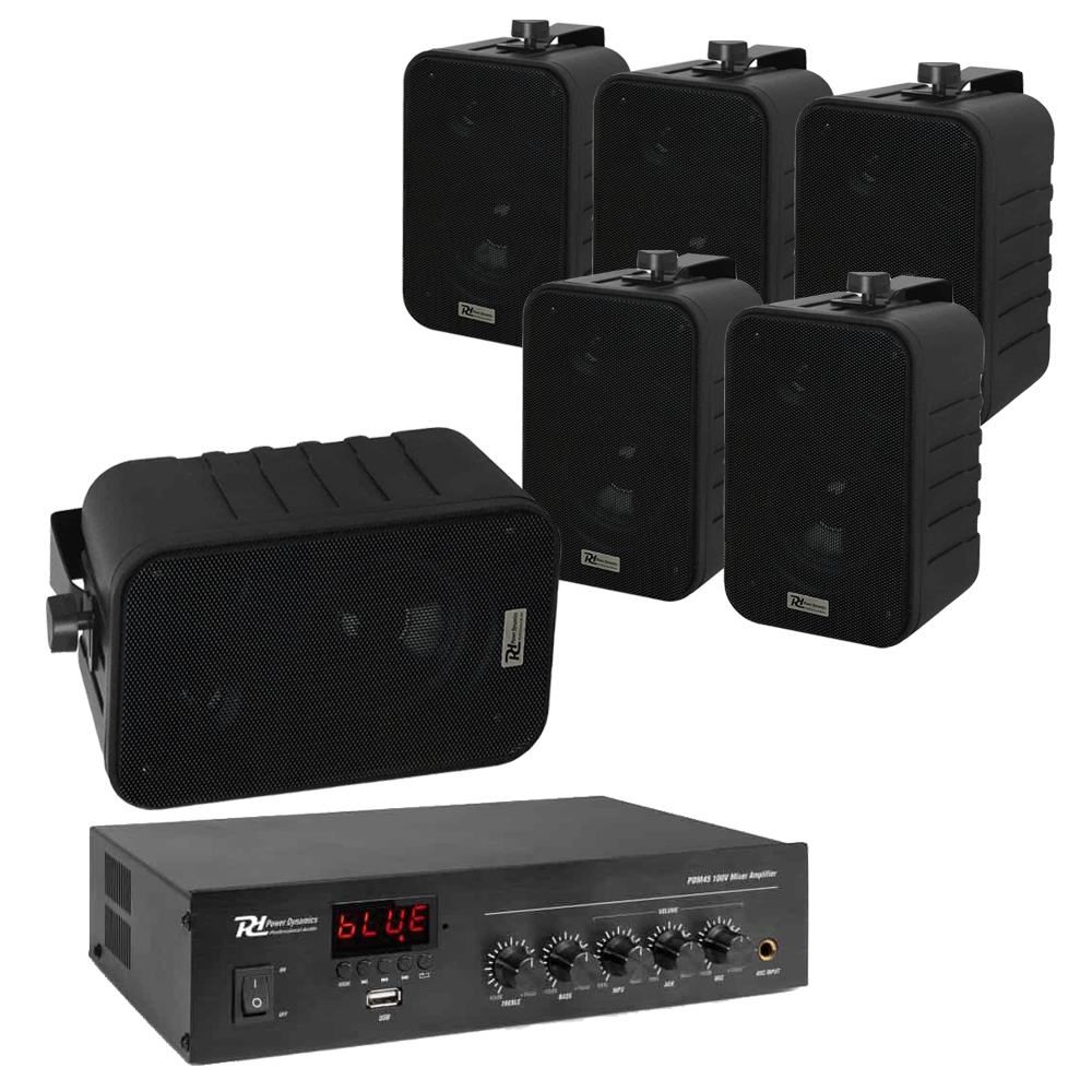 Sistem boxe cu amplificator Ambient 6, Negru, cu aspect elegant si sunet excelent, pentru cafenele si restaurante