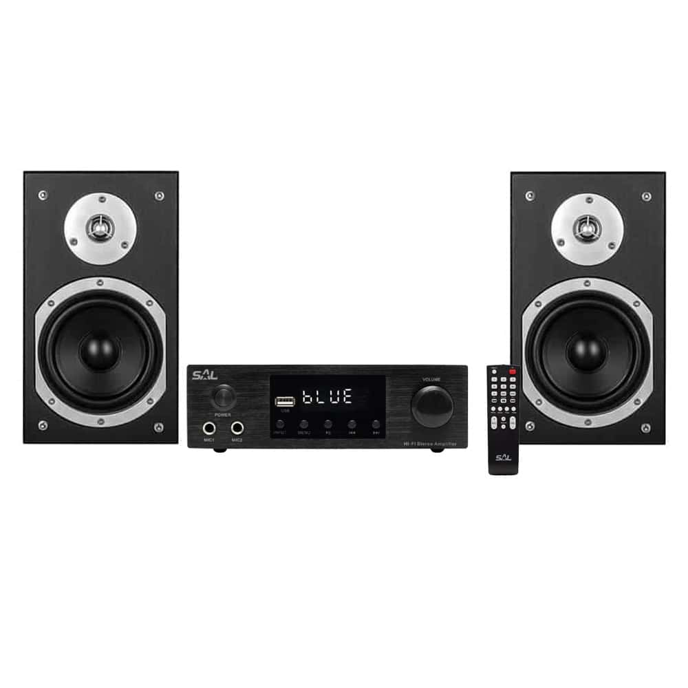 Sistem audio bluetooth stereo cu boxe de raft 5 inch. Ideal pentru instalare tip Desktop sau pe raft. Format din 2 boxe Fenton SHFB-55-Set cu receiver SAL BTA250 – bluetooth