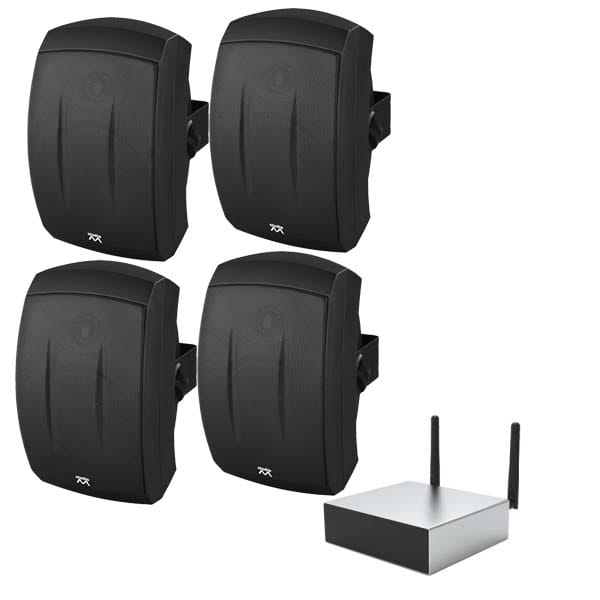 Sistem sonorizare ambiental complet, conceput pentru sonorizare terasa, restaurante, cafenele si bar-uri cu dimensiuni mici si medii (80 mp). Boxele au sistem de aplicare pe perete.
