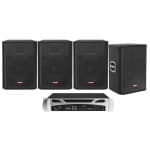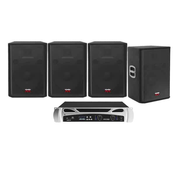 Sistem audio de putere pentru puburi, restaurante, baruri sau disco, format din 4 boxe 15 inch si ampificator.