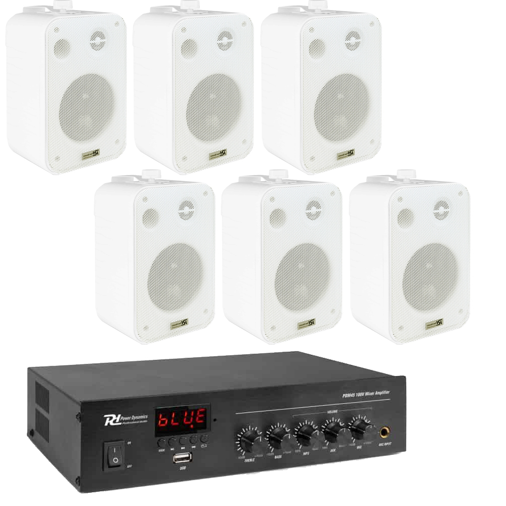 Sistem audio restaurant 6 boxe cu amplificator ambiental, Alb cu aspect elegant si sunet excelent, pentru cafenele si restaurante