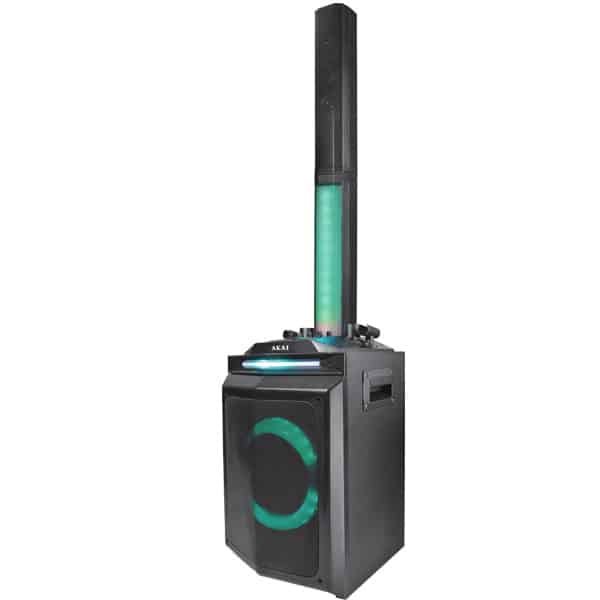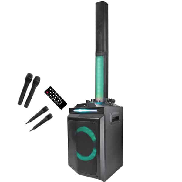 Sistem portabil Akai DJ-120 pentru Dj, petreceri, karaoke, complet, cu 4 microfoane, lumini disco si telecomanda.