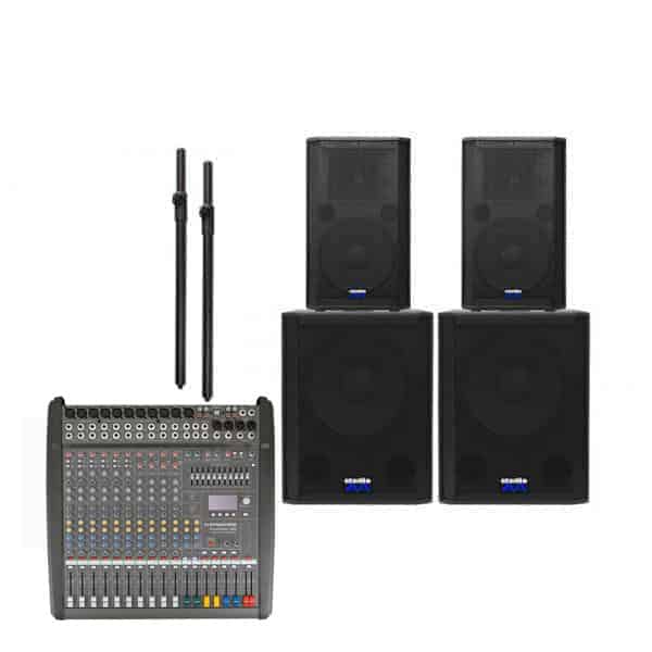 Compact Extreme HD-X215 – Un sistem audio ultra-portabil de mare putere (2000W RMS), optimizat pentru sonorizare de concerte live. Sistemul este portabil si gata pentru a fi pus in functiune in 5 minute, prin simpla conectare a cablurilor la boxe. Va oferi suficienta presiune sonora atat pentru concerte cat si pentru evenimente cu Dj, pentru aprox 300 persoane.