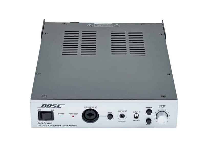 Amplificatorul Bose FreeSpace IZA 250-LZ este prevăzut cu tehnologie Opti-voice care asigură trecerea de la muzică la anunțuri și invers. Panou frontal simplu și intuitiv de folosit care permite conectarea de dispozitive sursă de semnal, setări de ton și volum, selectarea sursei. Prin utilizarea opționalelor Bose Volume Control se pot face modificări de volum sau sursă semnal de la distanță față de amplificator, acestea putând fi montate în camera în care sunt montate boxele.